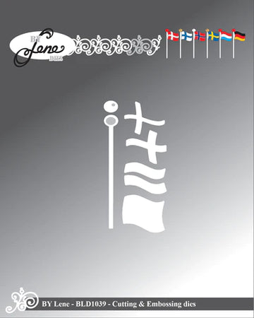 Et sæt med 5 dies. 1 flagstang, 2 flag baser og 2 med kors. Flagstang:...