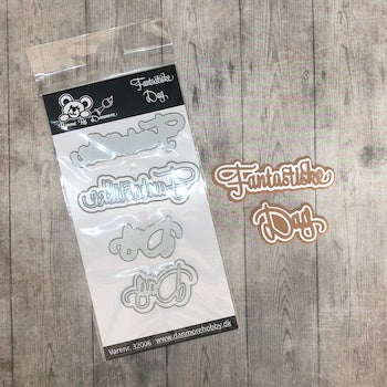 Dies str fra 6 x3,5cm til 9,3 x3,5cm Fantastiske Dag teksten fra Bjørns By Danmore...