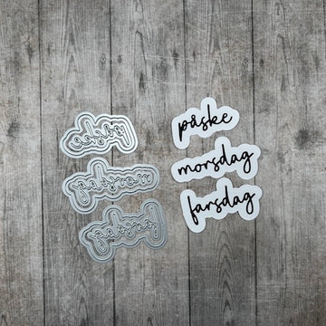 Sættet indeholder 6 dies. Sættet indeholder f.eks. teksterne “Påske” inkl. skygger dertil. tørste tekst (“Mors...