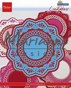 Sæt med én die. Sættet udskærer en cirkel med blomster og doily mønster på.