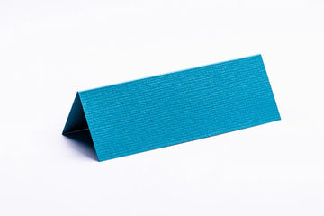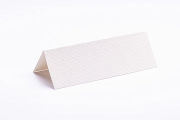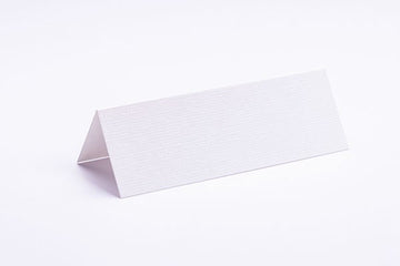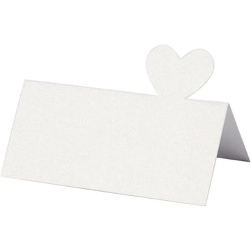Udstanset bordkort af kraftigt karton med perlemorsoverflade og hjerte i toppen