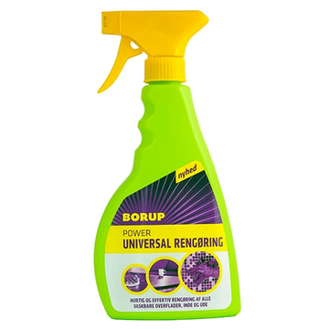 Power Universal Rengøring fra Borup kan anvendes til rengøring af eks. bordplader, voksduge, fliser, stål,...