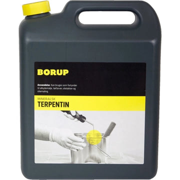 Mineralsk terpentin fra Borup kan bruges til at fortynde farver, og maling, og overflader der...