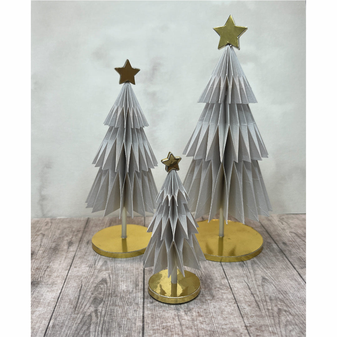 Juletræerne fra Dan Dies er lavet til at blive sat sammen ligesom vores påskeæg. Det vil sige at du skal bruge 12-15 udskæringer per træ. Træet findes i 3 forskellige størrelser, så du kan lavet et helt sæt (eller måske en hel skov?) af de fineste træer. I sættet finder du også dies til at lave en juletræsfod og en top stjerne. Begge dele kræver også flere lag. Du kan finde mere information om hvordan træet samles i vores youTube video.