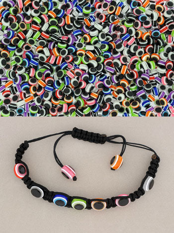 Perle plast oval 8x10mm 'øje' mix 8 farv