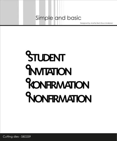 Teksterne er: “Student”, “Invitation”, “Konfirmation”, og “Nonfirmation”.