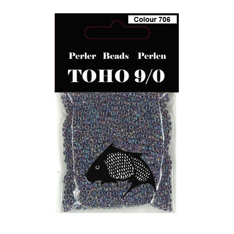 TOHO perler 9/0 farvenr 706 lilla regnbue farvet kerne klar udenom. 40g