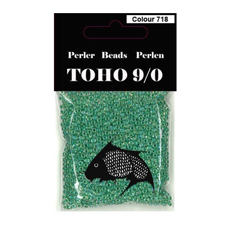 TOHO perler 9/0 farvenr 718 grøn kerne klar udenom. 40g