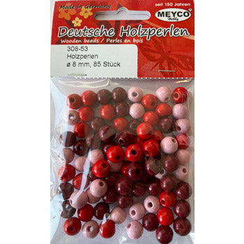 Træperler 8mm røde farver 85stk